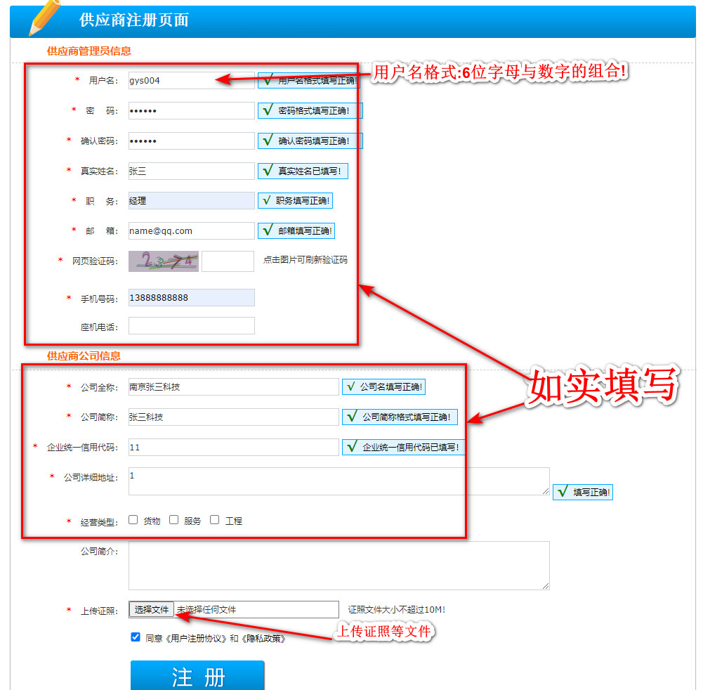3、提交完成后主动联系对接采购员进行资料审核。不审核无法登陆。审核完成即可进行招投标报名等操作。
